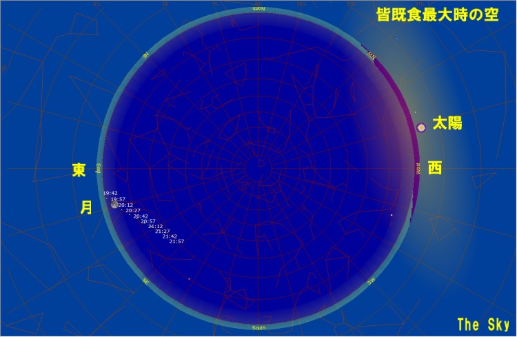 又、まだまだ空は明るく、又東の方向に雲が広がり、実際に皆既状態の月が見れたのは最後の15分ほどだけでした。