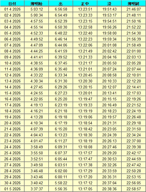 日出、日没
