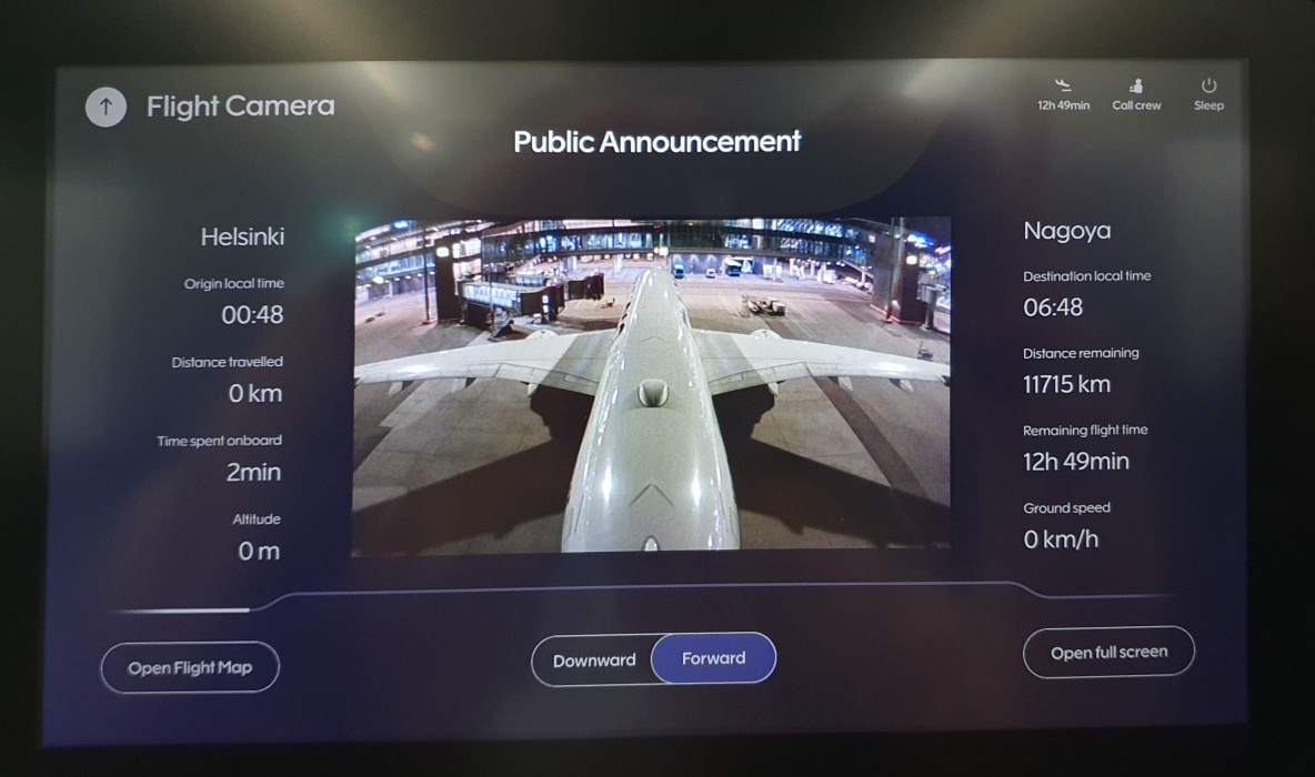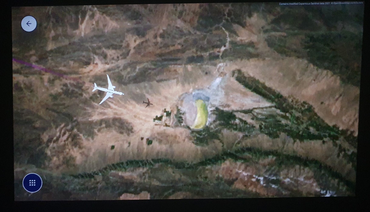 幸いこの飛行機には尾翼と機体下部にカメラが付いていて、座席のモニターでライブで見ることが出来ます。