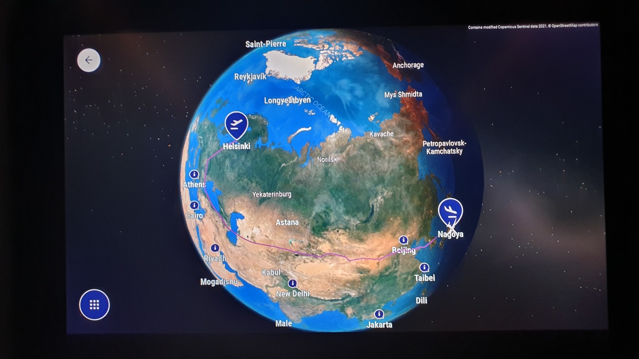 北極経由を期待して、席を進行方向右に取ったのですが、残念ながら南回りで飛びました。