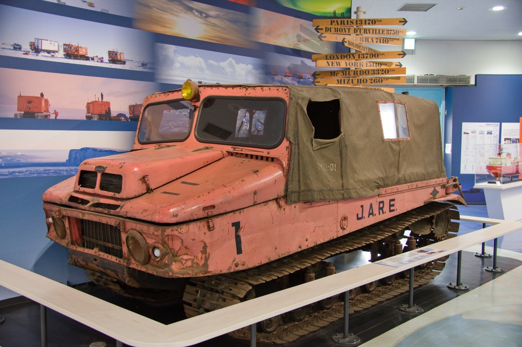 肝心の観測船は見た目は非常に小さく見えるのですが、中はかなり大きく、実際に使用されたヘリコプターが甲板に展示されており、室内にもボロボロになった雪上車が展示されていました。なんとなく憧れの南極に思いを馳せる時でした。