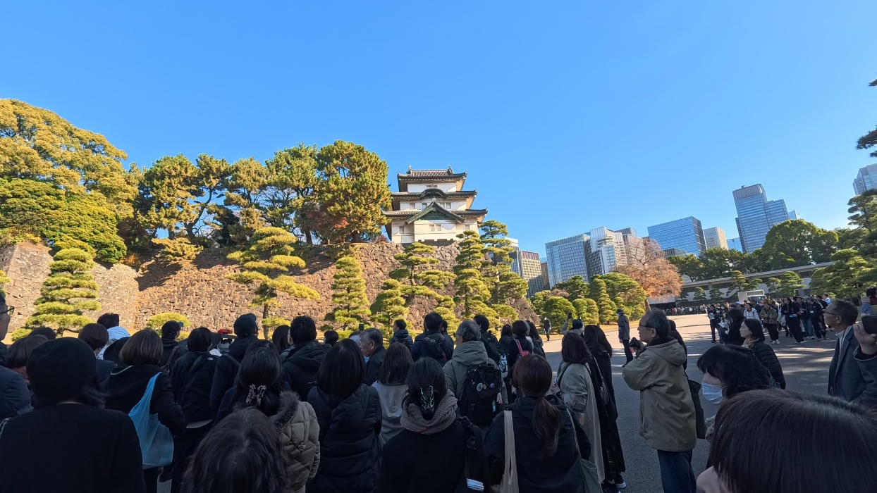 以前から行きたかった皇居。 やっと予約が取れて、見学してきました。 総勢300人ほど居たでしょうか?多国言語対応での見学です。 もう少し室内も見れるのかと思ったのですが、外部だけの見学でした。 一旦出て、スターバックスでお茶をした後に庭園も歩き回ってきました。ちょっとした散歩には大変良いところです。