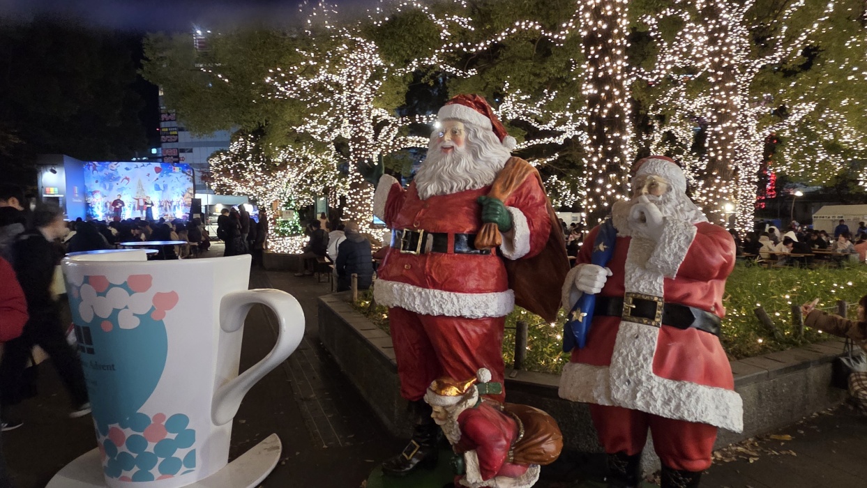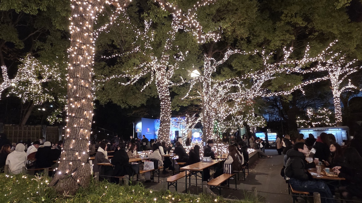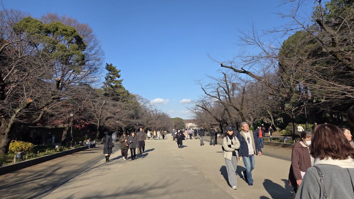 時間が空いた時は恒例の浅草寺です。何時来ても良い。 クリスマス前はどこでもクリスマスマーケットをやっています。 ヨーロッパのものまねなので、凄く違和感が有りますが、イベントの一部なのでこれで良しとします。 帰国する当日は深夜便なので、昼間は買い物と上野公園の散歩です。 やはり冬は快晴が続くので旅行には一番良いです。