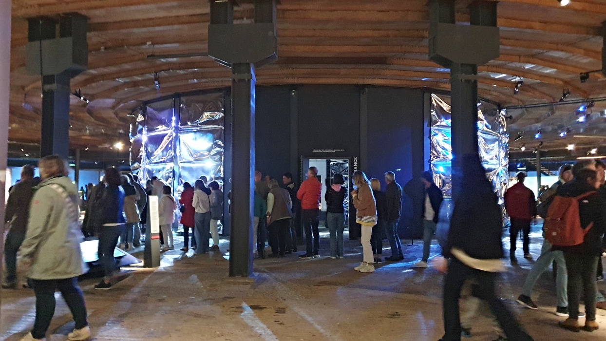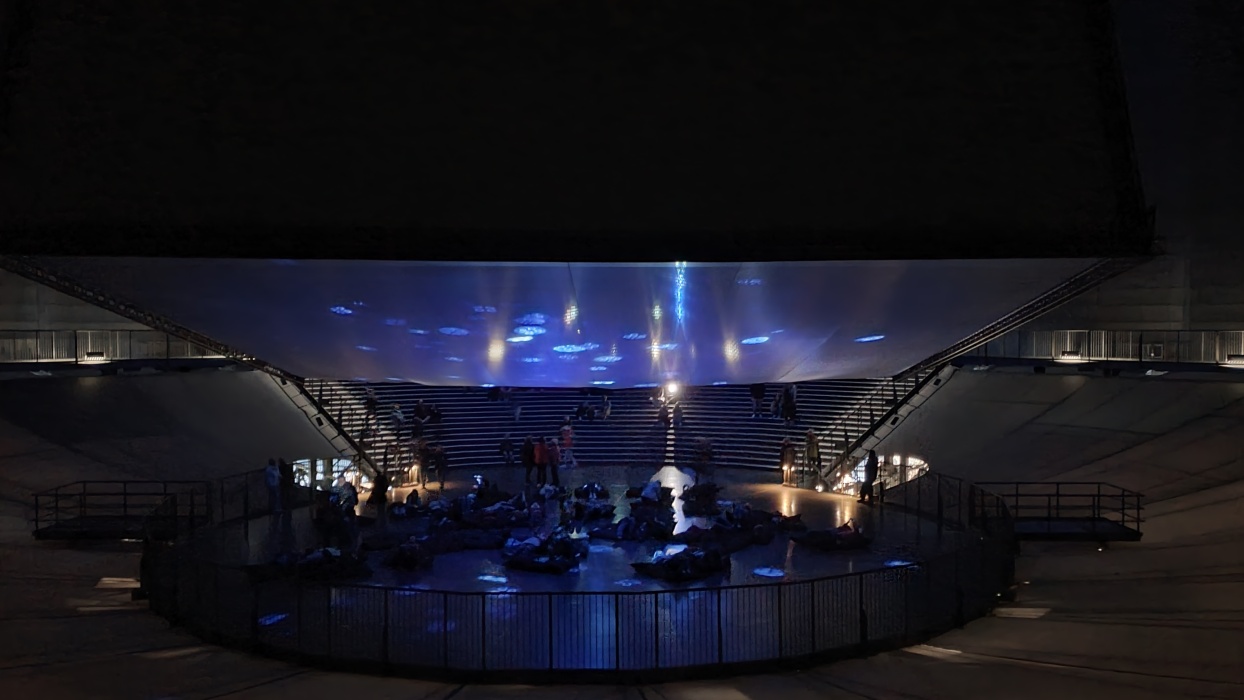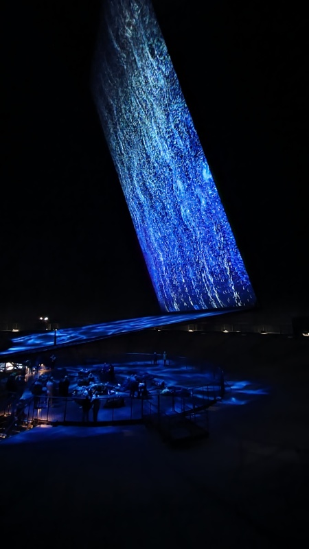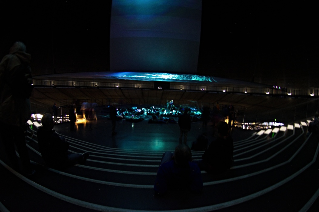 ガソメーターの特徴的な大空間を活かし、最上階のドーム内では迫力ある投影を駆使して海底を再現しています。