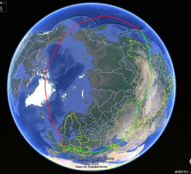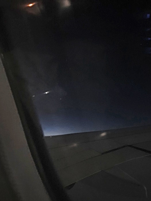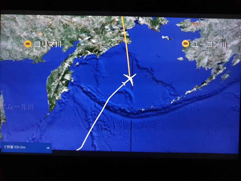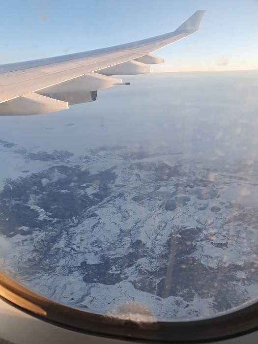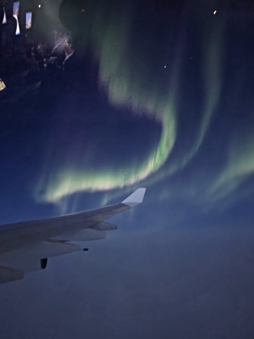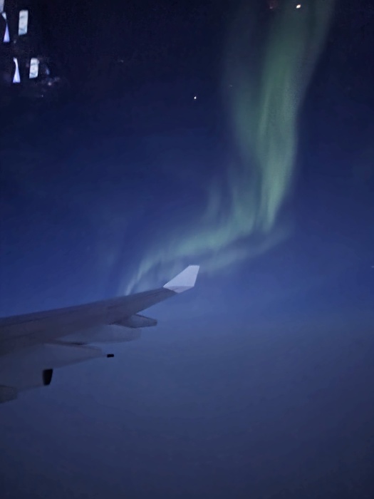 帰りは北極経由だったので、薄明の中でオーロラを見ることも出来ました。