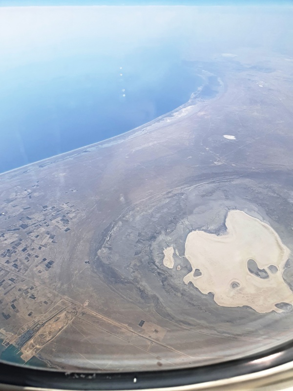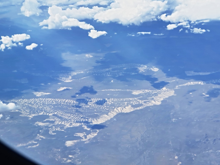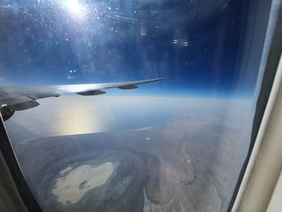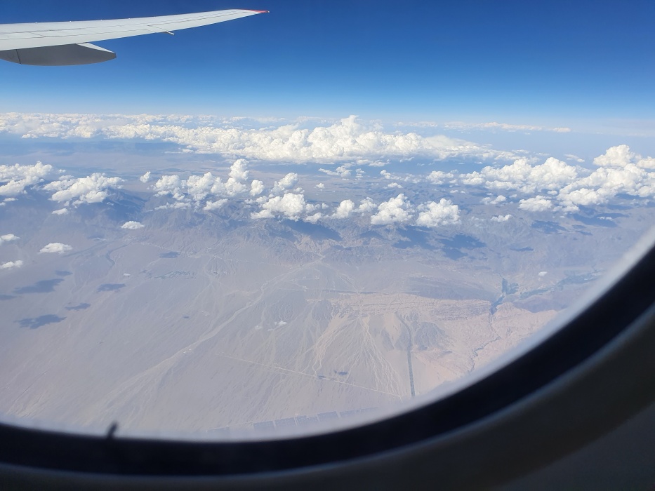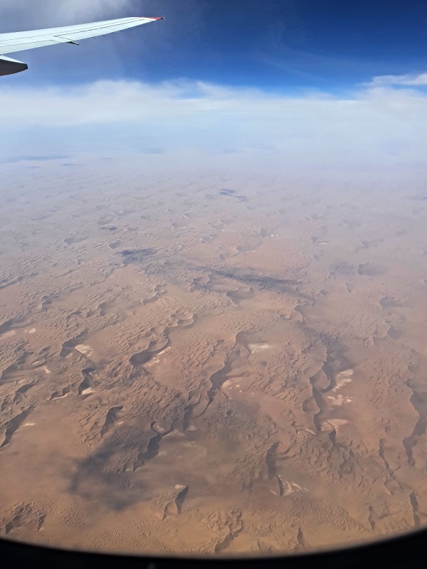 昼間の飛行且つ好天候に恵まれて、今まで一生に一度は見たいと思っていた砂漠の景色を一万メートル上空から見ることが出来ました。