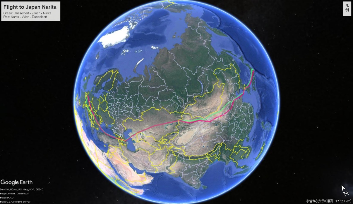 今回は行きはチューリッヒ経由、帰りはウィーン経由だったので、往復中央アジアを航行しました。