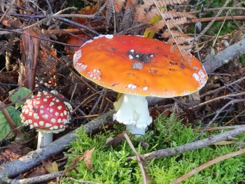 | ベニテングタケ Fliegenpilz | ツガサルノコシカケ Rorandiger Baumschwamm |