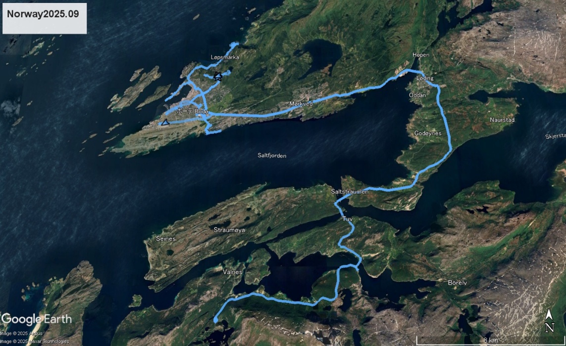 ソルトストローメンは、外海側のSaltfjorden(ソルトフィヨルド)と、内側のSkjerstadfjorden(スケルスタッドフィヨルド)をつなぐ狭い通路です。