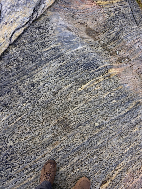 ここの基盤岩は片麻岩(gneiss) と呼ばれる変成岩で、約17〜18億年前に形成されました。