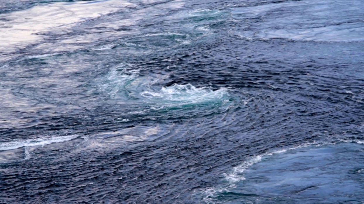 約 6時間ごと に潮の干満が入り替わり、外海から内海へ、またはその逆方向に大量の海水が流れ込んだり流れ出したりして、直径約 10 メートル、深さ約 4–5 メートル に達する渦が発生します。