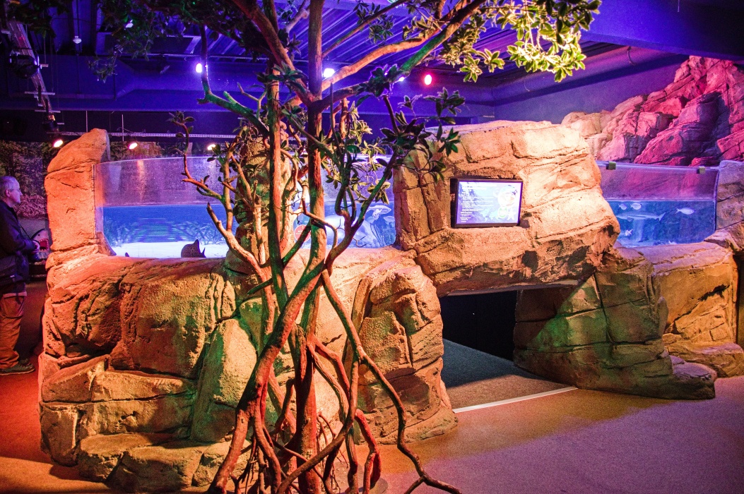 約5,000匹の水生生物が展示されており、淡水や海水の生態系を楽しむことができます。