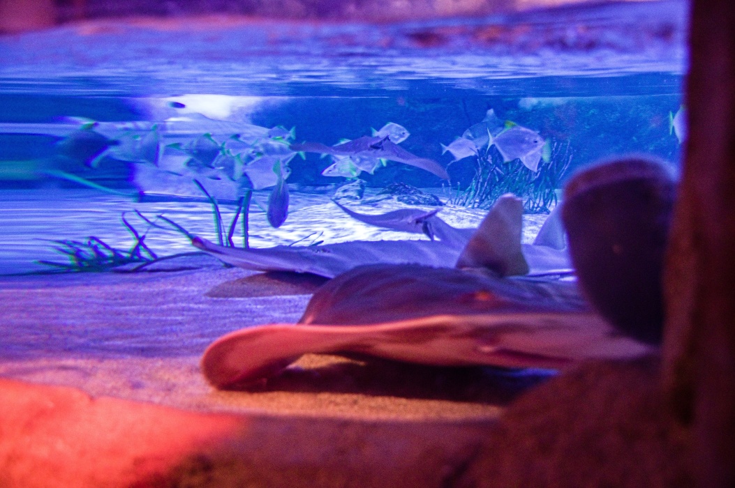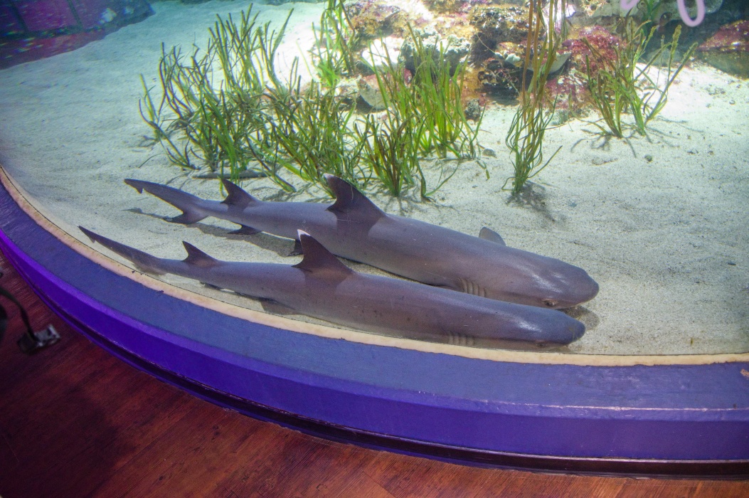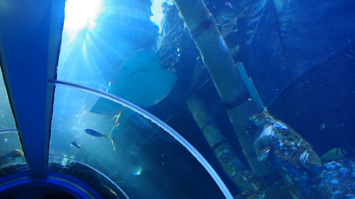 シャークトンネル、マンタやエイの展示、ヒトデや貝などに触れられる体験コーナーのタッチプールなどが設置されています。
