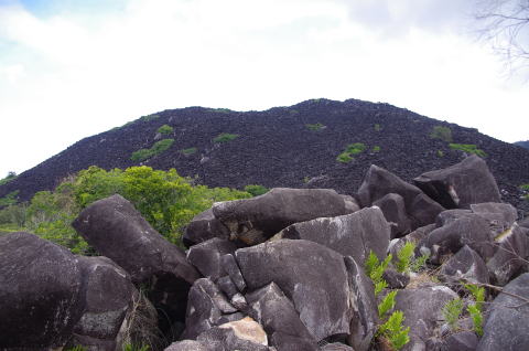 石炭の山の様に見えるこの山は花崗岩で形成されています。