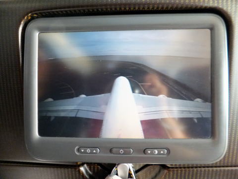 A380の尾翼にはカメラが装着されています。他の飛行機では機体の下にも付いていて、地上の様子も見えるのに…。