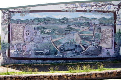| ハーバートン町 この地域で最初に出来た町。 パルマーリバーの金が見つかってから急速に発展した町です。 その歴史が壁に残されています。 |