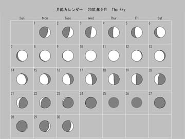 日付 出 正中 没 月齢 3 15.15 19.17 23.13 上弦 10 20.10 1.37 6.02 満月 18 22.51 6.41 15.19 下弦 26 7.14 13.35 19.39 新月