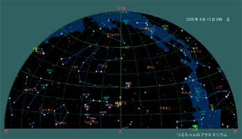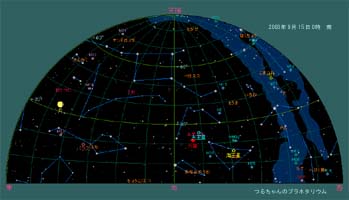 夜空も夜半を過ぎる頃から夏の星座に代わって、東の空から冬の明るい賑やかな星座が上ってきます。 9月15日0時頃の空