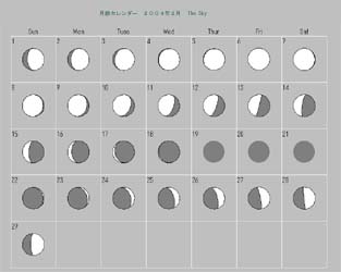 日付 出 正中 没 月齢 6 17.18 0.21 8.24 満月 13 1.11 5.56 10.29 下弦 20 7.57 12.46 17.46 新月 28 10.18 18.46 2.19 上弦