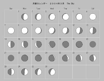 日付 出 正中 没 月齢 7 18.53 0.38 7.26 満月 13 1.49 5.45 9.33 下弦 20 6.37 12.12 18.01 新月 29 11.20 20.10 4.09 上弦