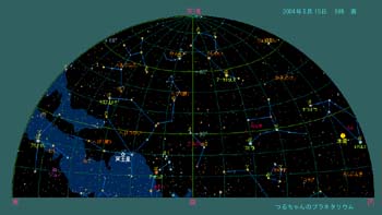 光度は既に1.8等迄落ちています。没も次第に早くなり、空がなかなか暗くならない5月の空では殆ど見分けがつかなくなってしまいます。しかし、22日の土星と月とのランデブー、25日(24日の24時)の土星との接近は見逃せん。