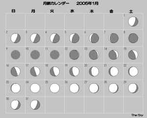 日付 出 正中 没 01 1 2005 1:05:59 6:41:55 12:17:46 11 1 2005 0:31:04 6:05:39 11:40:11 21 1 2005 23:50:48 5:28:20 11:02:05 31 1 2005 23:12:26 4:49:53 10:23:25