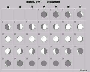 日付 出 正中 没 01 3 2006 0:09:44 4:51:41 9:33:39 11 3 2006 23:26:02 4:12:14 8:54:23 21 3 2006 22:44:34 3:31:32 8:14:20 31 3 2006 23:01:31 3:49:41 8:33:32