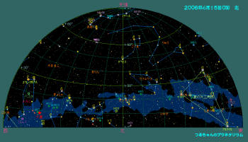日付 出 正中 没 01 4 2006 22:57:08 3:45:26 8:29:24 11 4 2006 22:12:36 3:02:28 7:47:54 21 4 2006 21:27:05 2:18:45 7:05:54 01 5 2006 20:40:57 1:34:33 6:23:36