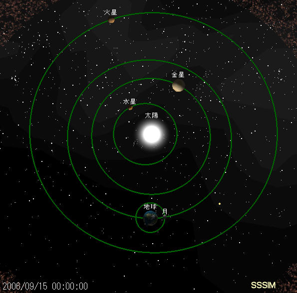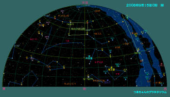 日付 出 正中 没 01 9 2006 19:12:52 0:01:45 4:46:38 11 9 2006 18:33:00 23:17:29 4:05:59 21 9 2006 17:53:13 22:37:21 3:25:30 01 10 2006 17:13:32 21:57:23 2:45:14