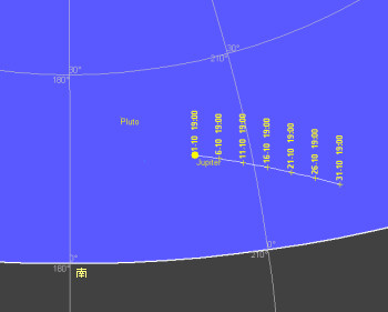 7月19日に衝となった冥王星は没が早くなるので、夜半前のみ観望可能です。大変暗いので、観望には大型望遠鏡が必要です。