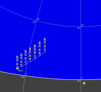 日付 出 正中 没 01 10 2007 4:05:50 11:04:41 18:03:25 11 10 2007 3:32:34 10:29:30 17:26:20 21 10 2007 2:58:46 9:53:58 16:49:05 31 10 2007 1:24:20 8:18:01 15:11:37 ![]()