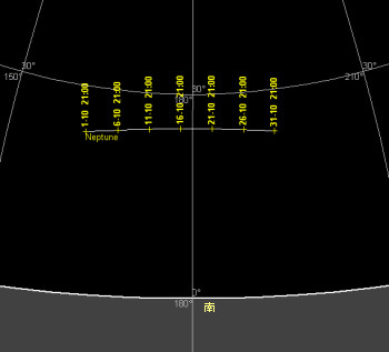 8月13日に衝となった海王星は没が早くなるので、夜半前のみ観望可能です。