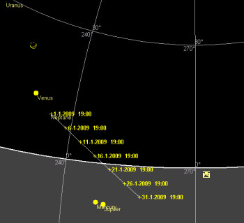2月に合となる海王星は没がますます早くなり今月は殆ど観望不可能です。