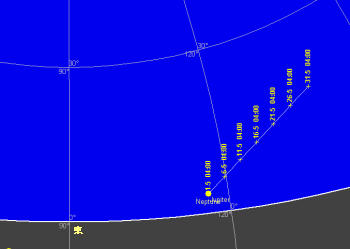 日付 出 正中 没 01 5 2009 15:08:33 21:49:08 4:33:45 11 5 2009 14:28:17 21:09:07 3:53:56 21 5 2009 13:49:00 20:29:45 3:14:24 31 5 2009 13:10:41 19:51:00 2:35:11 ![]()