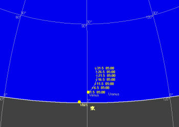 3月13日に合となった天王星は太陽に近く観望不可能です。