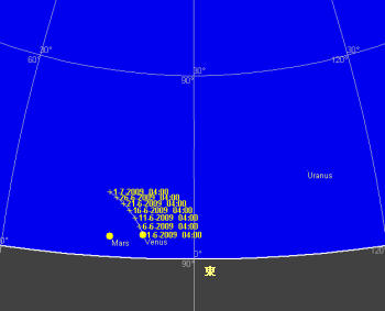 日付 出 正中 没 01 6 2009 1:40:26 6:37:36 11:34:49 11 6 2009 1:02:00 5:59:28 10:56:56 21 6 2009 0:22:55 5:20:06 10:17:17 01 7 2009 23:39:09 4:39:31 9:35:50 ![]()