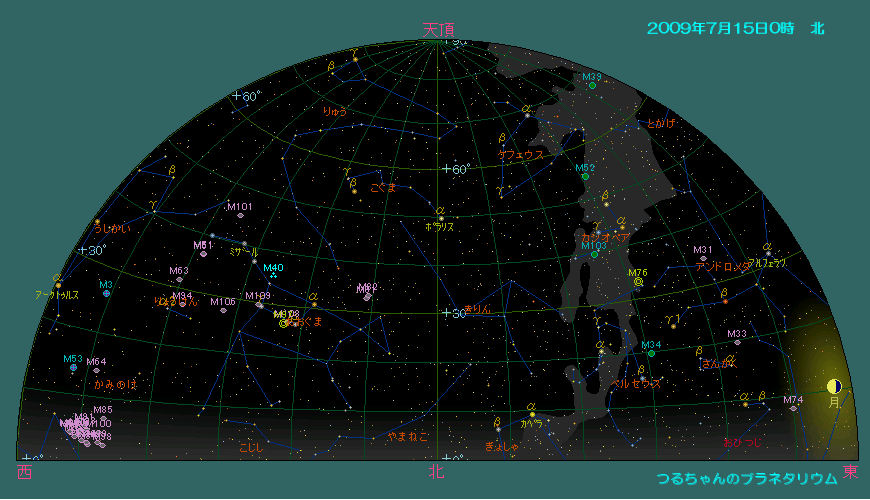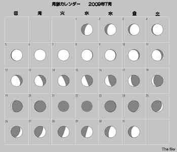日付 出 正中 没 01 7 2009 23:35:00 4:37:10 9:35:21 11 7 2009 22:55:19 3:57:09 8:54:59 21 7 2009 22:15:33 3:16:59 8:14:26 31 7 2009 21:35:44 2:36:44 7:33:43 ![]()