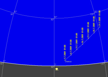 天王星は次第に出が早くなりますが、非常に暗い惑星なので観望には大型望遠鏡が必要です。