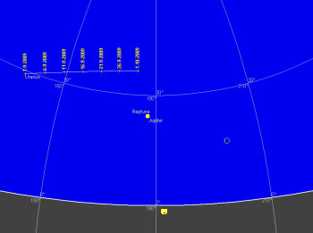 先月衝となった海王星は一晩中観望可能です。7.9等と大変暗いので観望には望遠鏡が必要ですが、今月の海王星は木星にぴったりとついているので、見つけやすいでしょう。