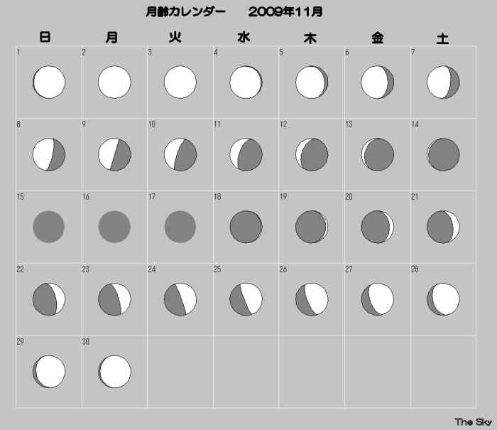 日付 出 正中 没 01 11 2009 6:54:36 11:54:53 16:53:46 11 11 2009 7:49:55 12:18:22 16:45:44 21 11 2009 8:41:00 12:43:29 16:45:16 01 12 2009 9:23:20 13:10:16 16:56:57