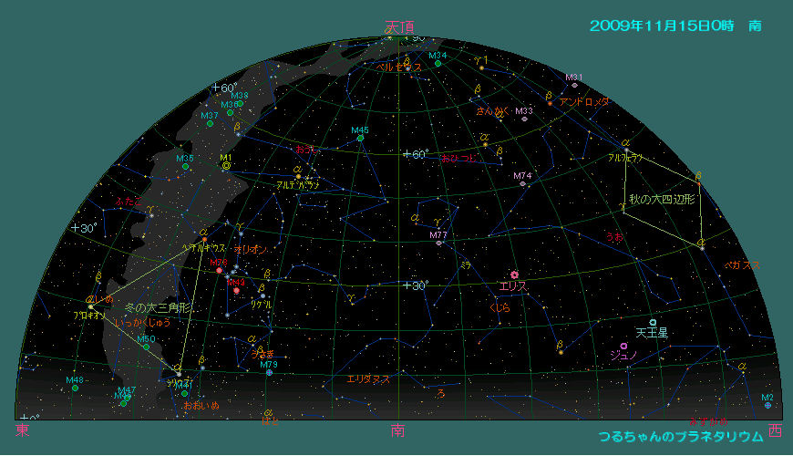 今月のハイライトは恒例のしし座流星群です。極大時は新月にあたり、条件は最良です。是非観望して下さい。