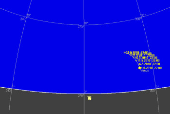 日付 出 正中 没 01 5 2010 12:05:12 19:45:20 3:28:04 11 5 2010 11:51:17 19:22:52 2:56:58 21 5 2010 11:39:13 19:01:34 2:26:21 31 5 2010 11:28:38 18:41:07 1:56:01 ![]()