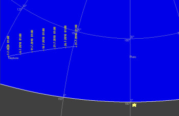 25日に衝となる冥王星は一晩中観望可能です。暗い星なので、望遠鏡が必要です。
