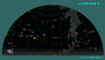 いて座とさそり座付近の星雲星団群(M4、6、7、8、20、22)、アンドロメダ座のアンドロメダ大銀河(M31)、ペルセウス座の2重星団(h-χ、エイチ・カイと読む)と散開星団(M34)、ヘルクレス座の散開星団(M13)、へび座の散開星団(M5)と見ものは一杯。