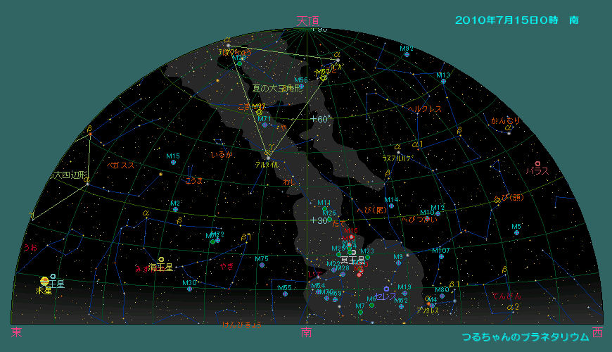 今月の惑星は夕方に集中します。木星の出も早くなり、観望しやすくなります。 7月の天気 7月15日0時頃の空