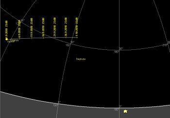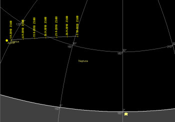 海王星 先月衝となった海王星は一晩中観望出来ます。空が完全に暗くなれば、望遠鏡ならば南の空で見つける事が出来ます。
