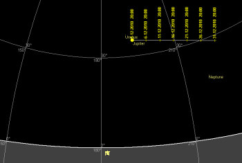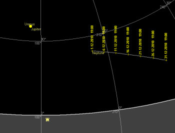 海王星 今月の海王星は日没後ならばまだまだ観望出来ます。空が完全に暗くなれば、望遠鏡ならば南の空で見つける事が出来ます。