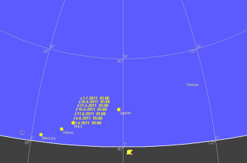 火星と木星がようやく夜明け前の空で何とか見つけられる様になりました。水星と金星は未だ太陽に近いので観望は出来ません。土星もまだまだ夜半過ぎの空で観望出来ます。