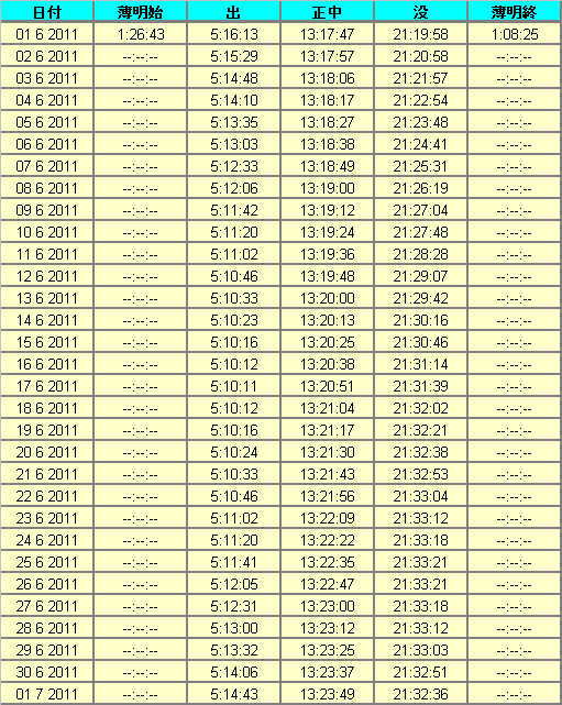 ドイツの6月には天文薄明は有りません。