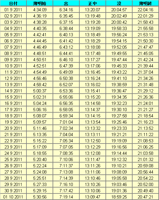 出現期間 9月4日〜14日 極大 9月9日 出現規模 5個/時間